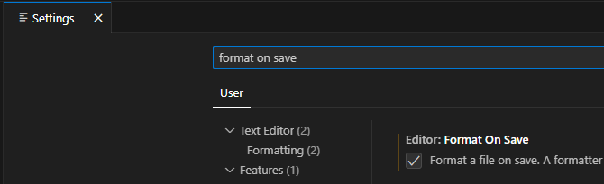 검색창에 format on save 검색 후 Format On Save 설정 활성화