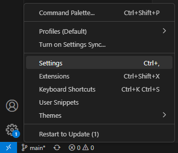 왼쪽 메뉴 톱니바퀴 클릭 후 Settings 클릭
