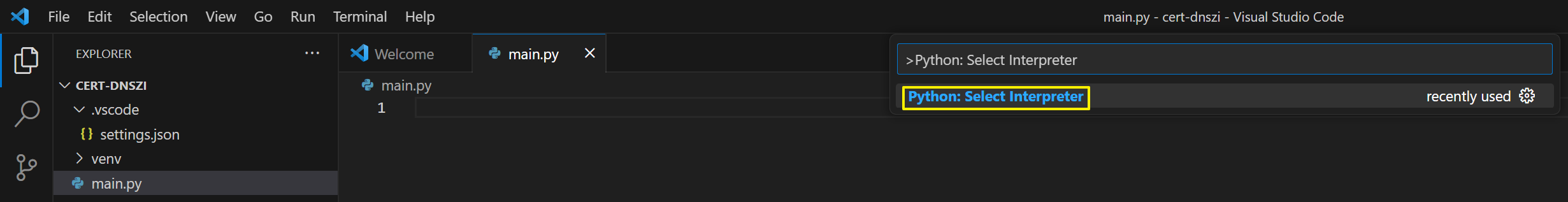 Ctrl + Shift + P 또는 F1로 Command Palette 열어서 Python: Select Interpreter 입력