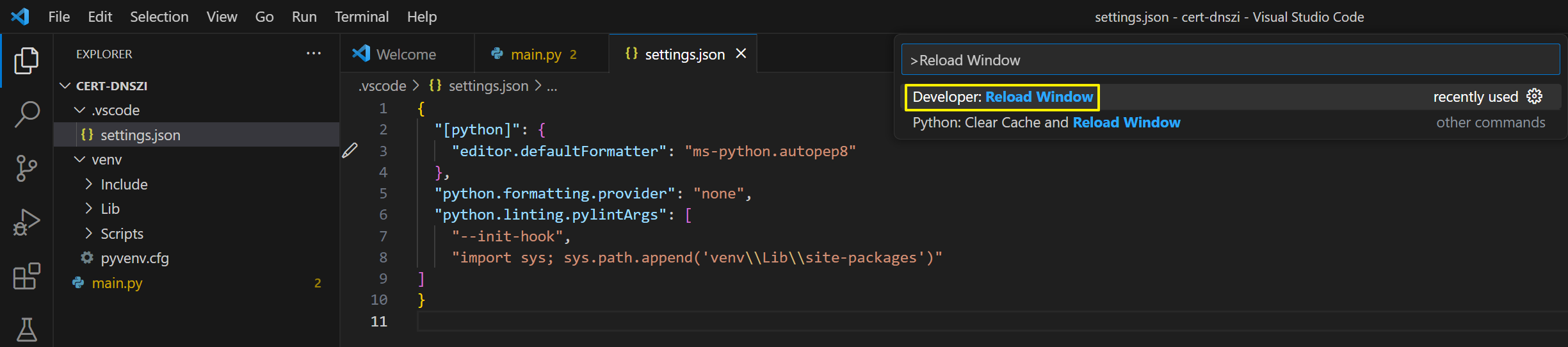 Ctrl + Shift + P 또는 F1로 Command Palette 열어서 Reload Window 입력 후 선택