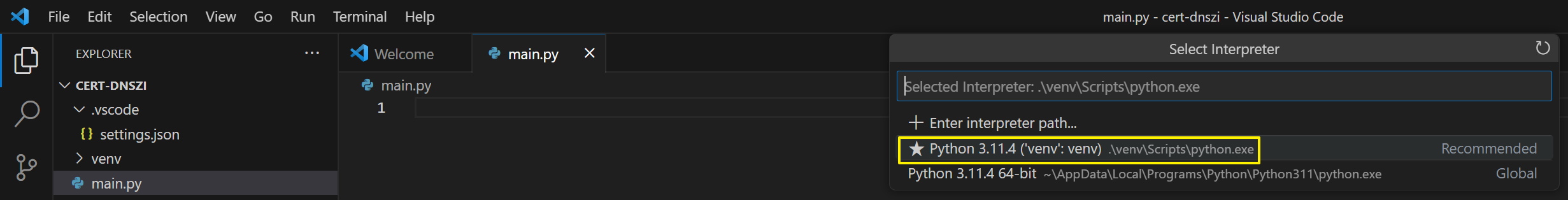 Reload 후 새로 열린 터미널 (자동으로 안열리면 새로 열면 됨)에서 프롬프트 왼쪽이 (venv)로 나오는지 확인
