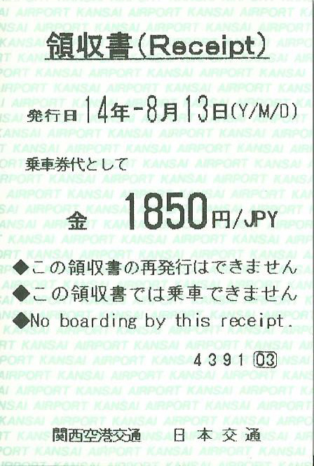 KIX에서 난바로 가는 표 입니다. 번호는 7462번 이군요. ㅋ
