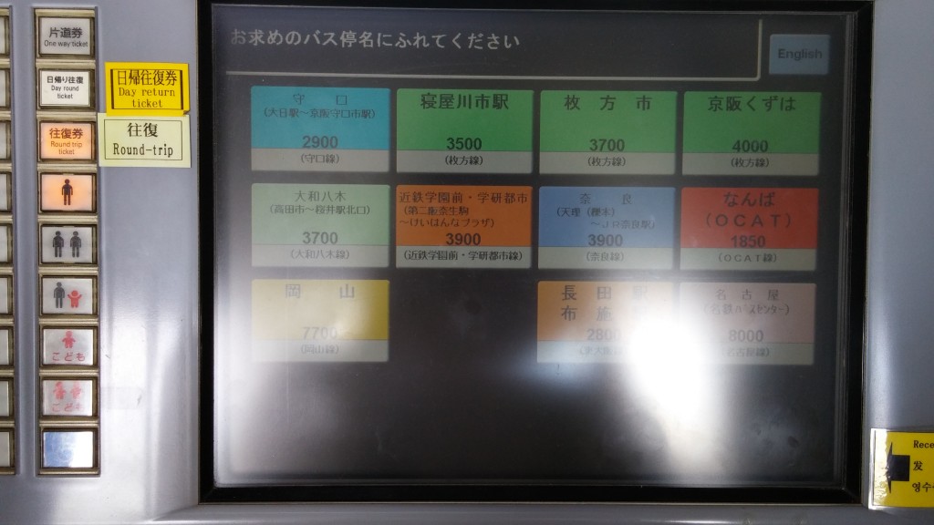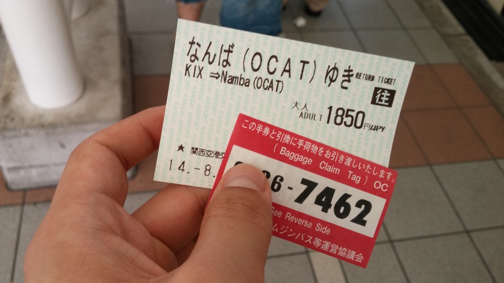 왼쪽에서 왕복(Round-trip) 버튼을 누르고 바로 아래 사람모양을 누른다음 이용할 표를 끊으면 됩니다. 왕복 1850엔인 난바 (OCAT)를 끊었습니다. 원래 편도는 1000엔인데 왕복으로 하면 더 저렴합니다.