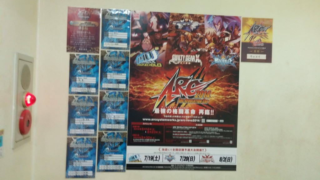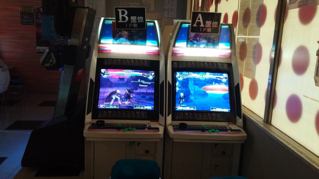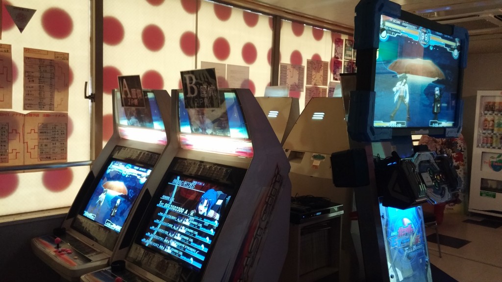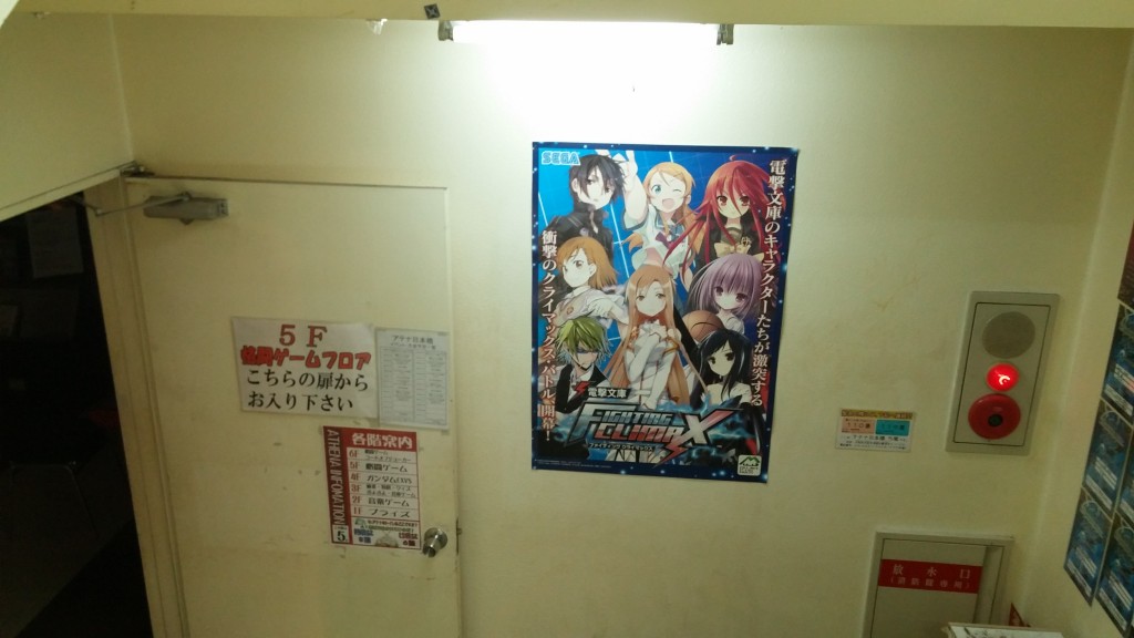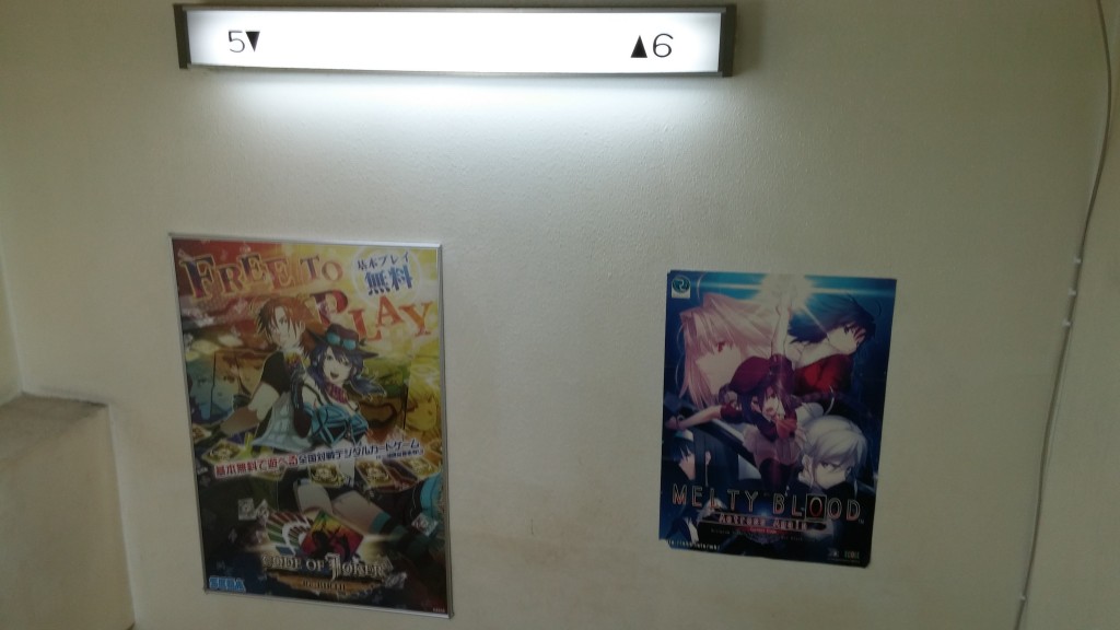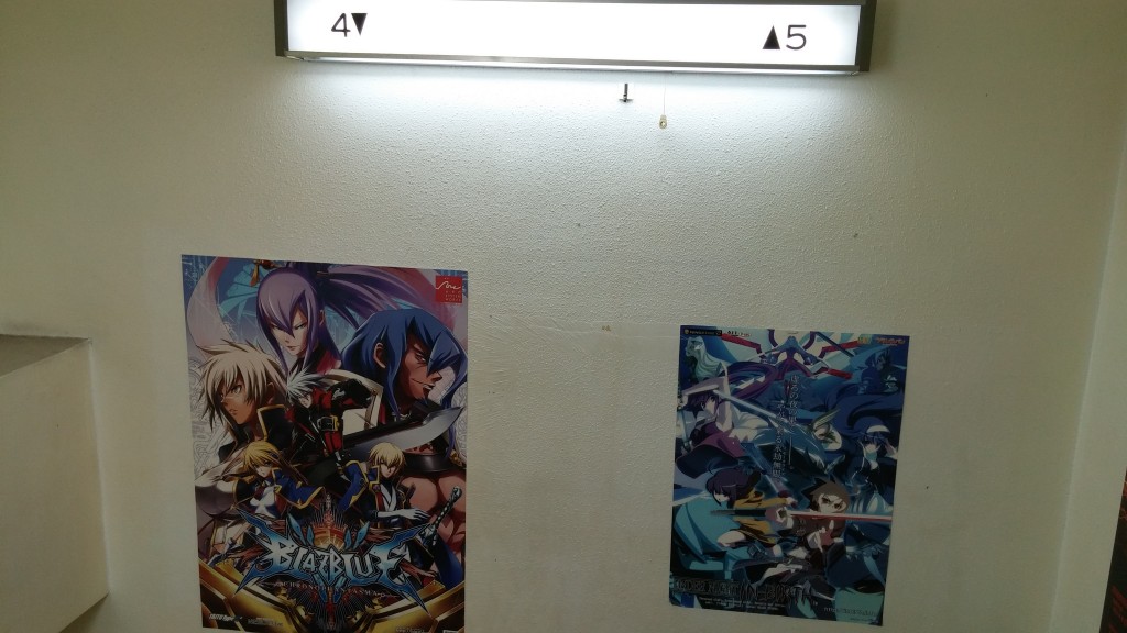 5층에 격투게임 오락기가 있습니다. 아마 인기가 있거나 최신것들만 있는 것 같습니다. BlazBlue와 Under Night IN-Birth 포스터가 보입니다.