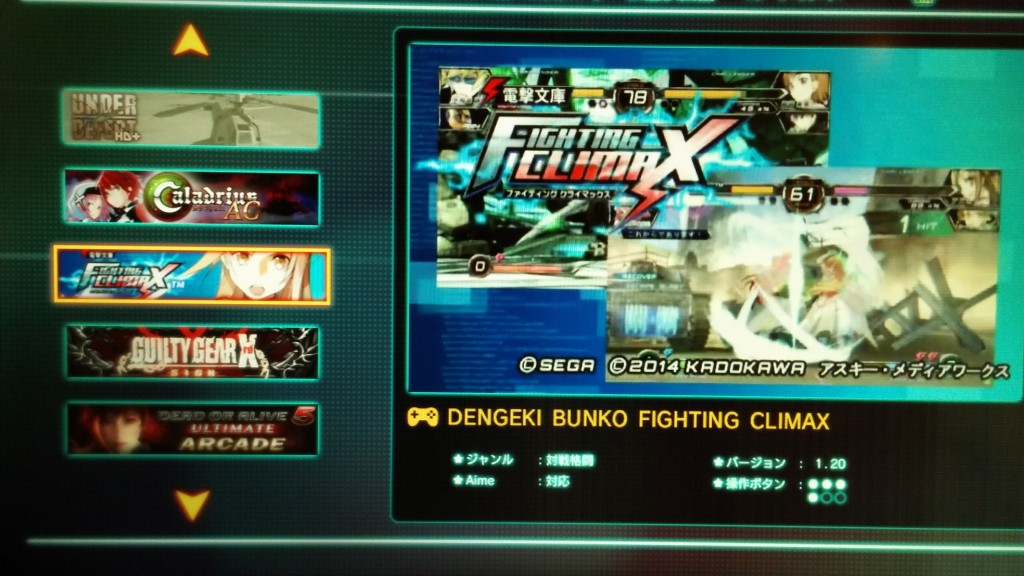 MBAACC 기기들이 총 8대였던 것 같습니다. 중앙에 있는건 뭐하는건지 모르겠네요. Climax와 다르게 1판에 50엔(약 500원) 입니다. 처음에 100엔짜리 넣으면 두판되는줄 알고 100엔짜리 넣었다가 상대편분의 도움을 받아서 간신히 돌려받을 수 있었습니다. ㅋㅋ 입구쪽에 동전 교환기 있는데, 50엔으로 바꾸시면 됩니다.