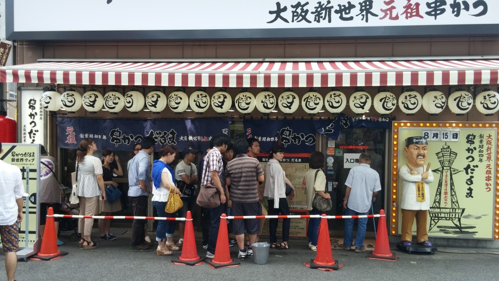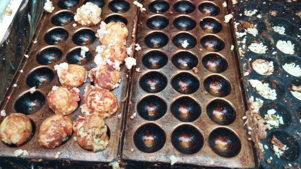드디어 저희 순서가 다가왔습니다. 찍어도 되는지 미리 양해를 구하고 찍었습니다. ㅋㅋ 꽤 젊으신 분들이 만들고 계시더군요. 타코야키를 먹으려고 하는데 갑자기 비가왔습니다. 그래서 우산쓰면서 서서 먹었네요 ㅡㅡ. 정작 츠텐카쿠는 사람이 너무 많아서 40분이상 기다려야된다고 해서 그냥 갔습니다. 특이한건 츠텐카쿠 안으로 들어가려면 지하로 들어가야한다고 하더라고요. 츠텐카쿠 아래쪽을 보면 들어가는 입구가 없습니다.