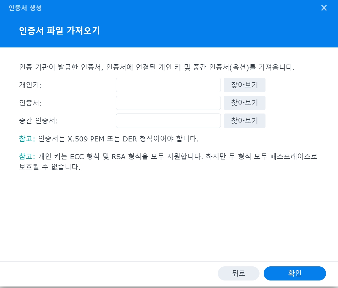 chain.pem: 웹 브라우저가 서버 인증서의 유효성을 검사하기 위해 필요한 추가 중간 인증서 또는 인증서들.