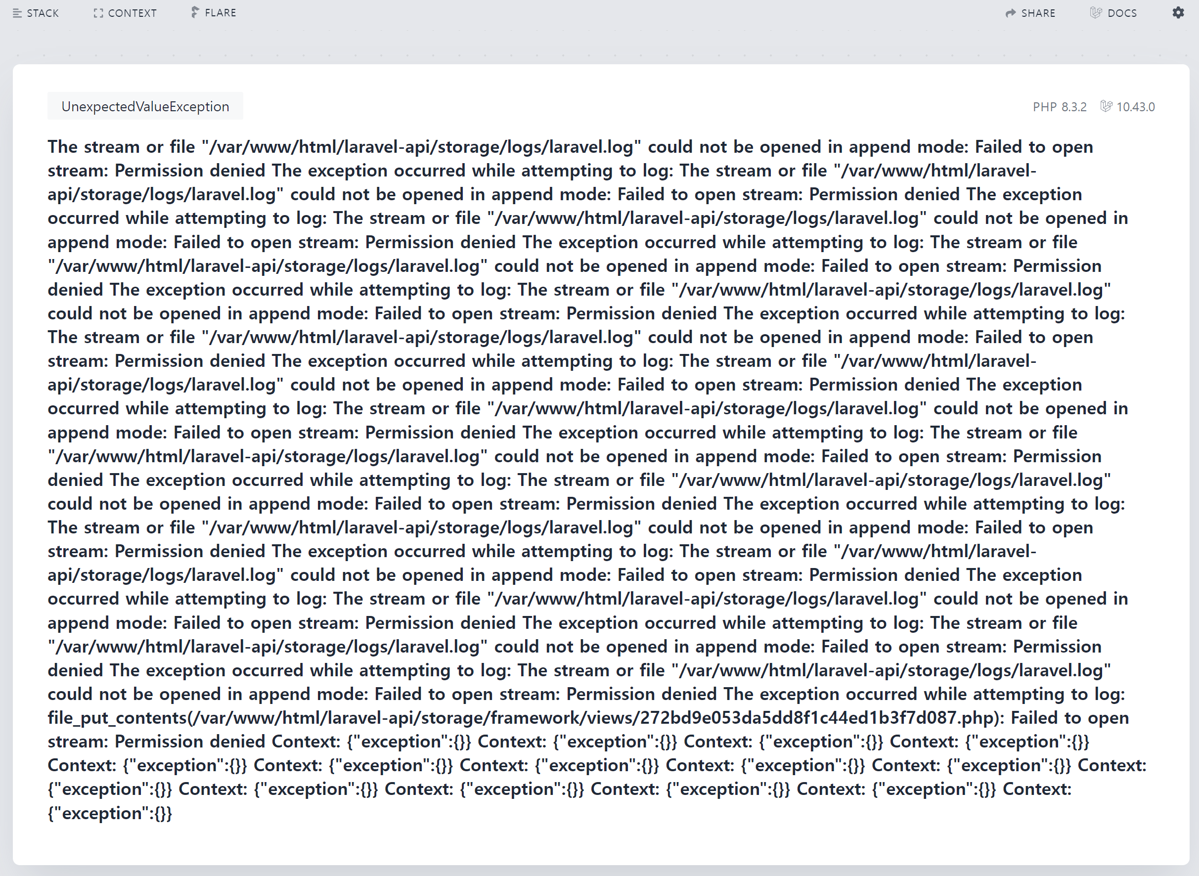 root@94aba7ed99b7:/var/www/html/laravel-api# chown -R www-data:www-data storage